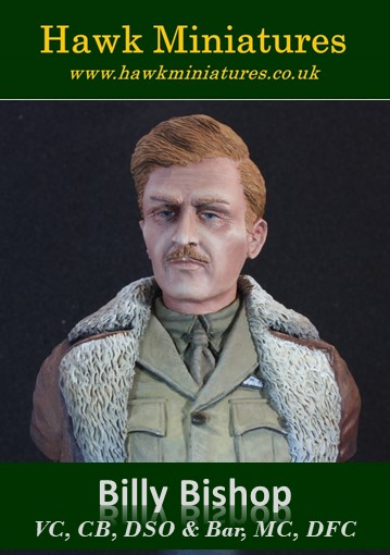 Hawk Miniatures is proud to present this 1/10th fine scale model bust kit of Billy Bishop VC, CB, DSO & Bar, MC, DFC, a First World War fighter ace.