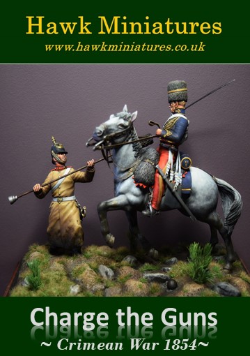 Charge the guns, Charge of the Light Brigade, Crimean War 1854Hawk Miniatures presents a 90mm Scale mounted figure representing a mounted 11th Hussar (Prince Albert's Own) in combat with a Russian artilleryman, during the Charge of the Light Brigade, Crimean War 1854.Manufacturer: Hawk Miniatures Availability: Out of stockSKU: AB/17 £109.95 Custom wishlist OKAdd to wishlistEmail a friend11th Hussars (Prince Albert's Own)and a Russian ArtillerymanCharge of the Light BrigadeCrimean War 1854 Hawk Miniatures presents a 90mm Scale mounted figure representing a mounted 11th Hussar (Prince Albert's Own) in combat with a Russian artilleryman, during the Charge of the Light Brigade, Crimean War 1854. Sculpted By : Alan Ball Original Painted By : Eddy Vandersteen Scale : 90mm Figure Kit DetailsThe set is a multi-kit which contains figures and a horse depicting a mounted 11th Hussar (Prince Albert's Own) in combat with a Russian artilleryman, during the Charge of the Light Brigade, Crimean War 1854.All the figures are 90mm in scale and supplied unmade and unpainted.The kit requires assembly and is not suitable for children under the age of 12.The artist provided any groundwork shown in the pictures and is not included in the kit.Products specificationsAttribute nameAttribute valueConditionNewScale90mmProduct tags British (58), 90mm (7), Crimean (9), Alan Ball (37)Related products 11th Mounted Hussar, Charge of the Light Brigade 1854AB/16Hawk Miniatures presents a 90mm Scale mounted figure representing a mounted 11th Hussar (Prince Albert's Own), during the Charge of the Light Brigade, Crimean War 1854.£85.95Add to cart Custom wishlist OKAdd to wishlist Russian Artilleryman, Charge of the Light Brigade, Crimean War 1854AB/18Hawk Miniatures presents a 90mm Scale figure representing Russain Artilleryman, during the Charge of the Light Brigade, Crimean War 1854.£28.95Add to cart Custom wishlist OKAdd to wishlist