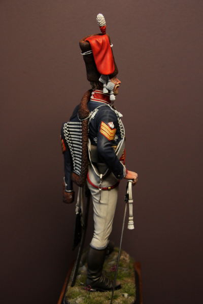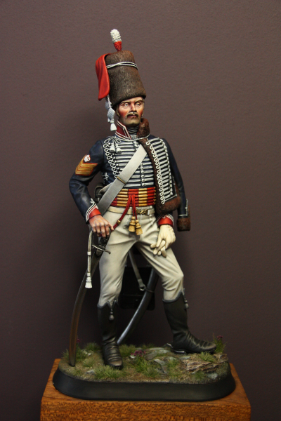 Sergeant The 15th (Kings) Hussars Figure, 1805Hawk Miniatures presents a 150mm fine scale model figure kit of a Sergeant from the 15th (Kings) Hussar during the Napoleonic period, in full dress uniform.Manufacturer: Hawk Miniatures Availability: 10 in stockSKU: DFG/02 £49.95 Qty: Add to cart Custom wishlist OKAdd to wishlistEmail a friendSergeant The 15th King's HussarsFull Dress 1805 – 1808Hawk Miniatures is proud to present a 1/12th fine scale model bust kit of a Sergeant from the 15th (Kings) Hussar during the Napoleonic period, in full dress uniform.Sculpted By: David F GrieveOriginal Painted By: Eddy VandersteenScale: 1/12th BustKit DetailsThe set is a multi-part bust kit depicting a Sergeant from the 15th (Kings) Hussars in full dress uniform during the Napoleonic period.The bust is 1/12th in scale and supplied unmade and unpainted.The kit requires assembly and is not suitable for children under 12.The artist provided the groundwork shown in the pictures; it is not included in the kit.Products specificationsAttribute nameAttribute valueConditionNewScale150mmProduct tags Napoleonic (23), British (36), 150mm (2), DF Grieve (6)